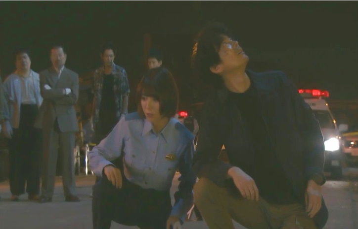 そのダミーの犯人の相良は、逃亡に疲れてビルから飛び降り自殺死体と発見されますが、その現場に駆けつけた橘と唐沢は、死体の状態から自殺ではなく、別の場所で殺されてから突き落とされた、と見ています。