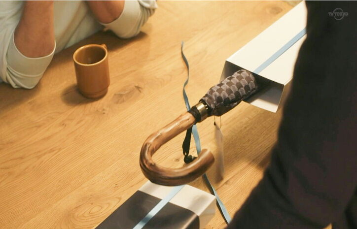 ケンジがくれた誕生日プレゼントの傘の価格が気になるようです。