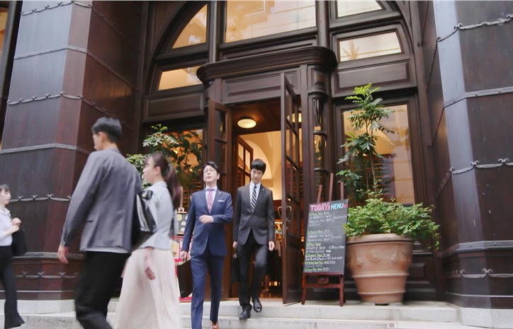 カフェを出た時、金融庁の若い署員が半沢を待ち構えて、金融庁に連れて行く。
