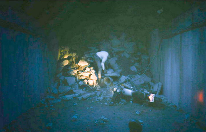 彼の前には瓦礫で出口が完全に塞がれており、そう簡単にはそれらをどけるということは困難だった。
