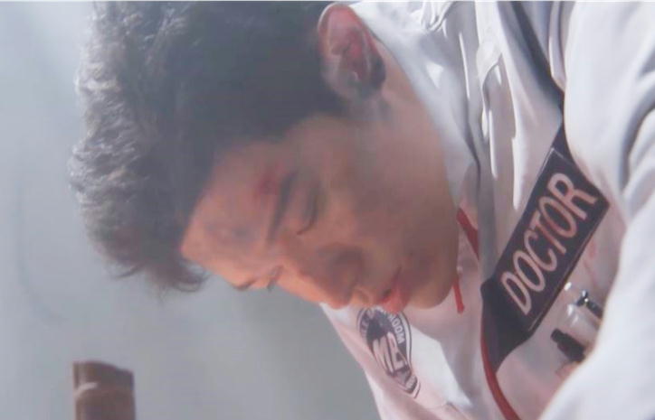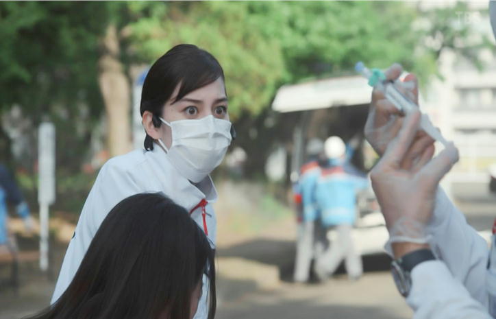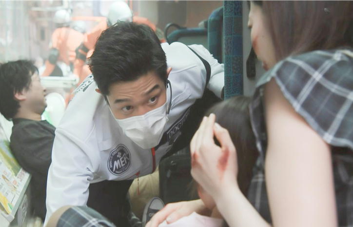 やはり、予想通り、もう一人の医師・音羽(賀来賢人)は式典には出席しませんでしたが、この事故現場に駆けつけて、処置をします。