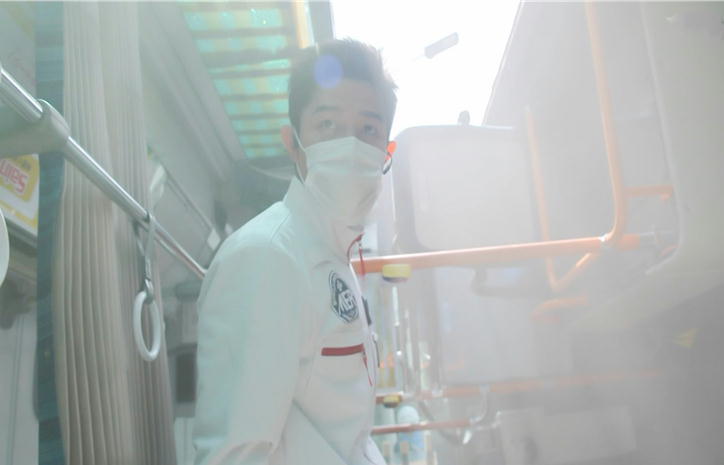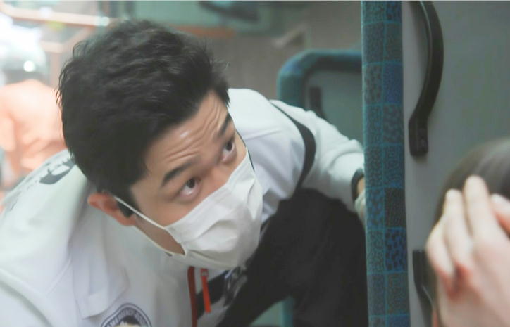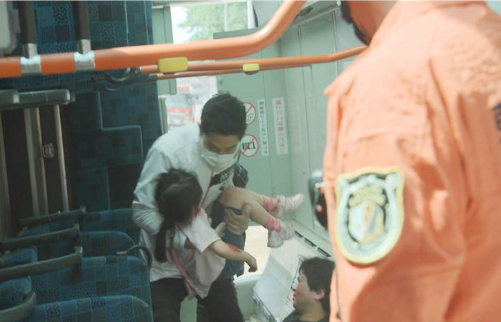 喜多見は、事故車両のバスの中に強引に入る。