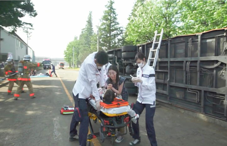 喜多見は、事故現場を見てスタッフたちに指示を出す。