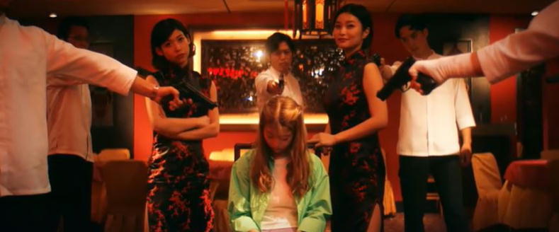 あらら・・ユリの顔にナイフ突きつけたり、銃を頭に当てたりと、やりたい放題ですね。