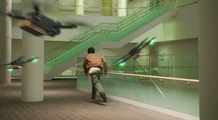 寸前のところで、自爆ドローンをかわしていきます。