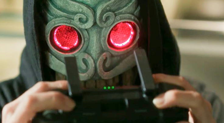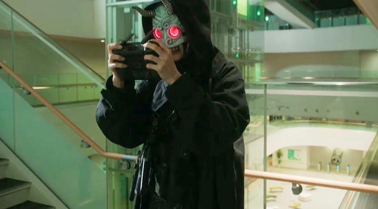 自爆型ドローンに追いかけられる武蔵。